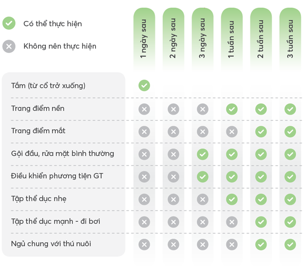 - Bệnh nhân có thể tắm rửa (từ phần cổ trở xuống) ngay trong ngày đầu.